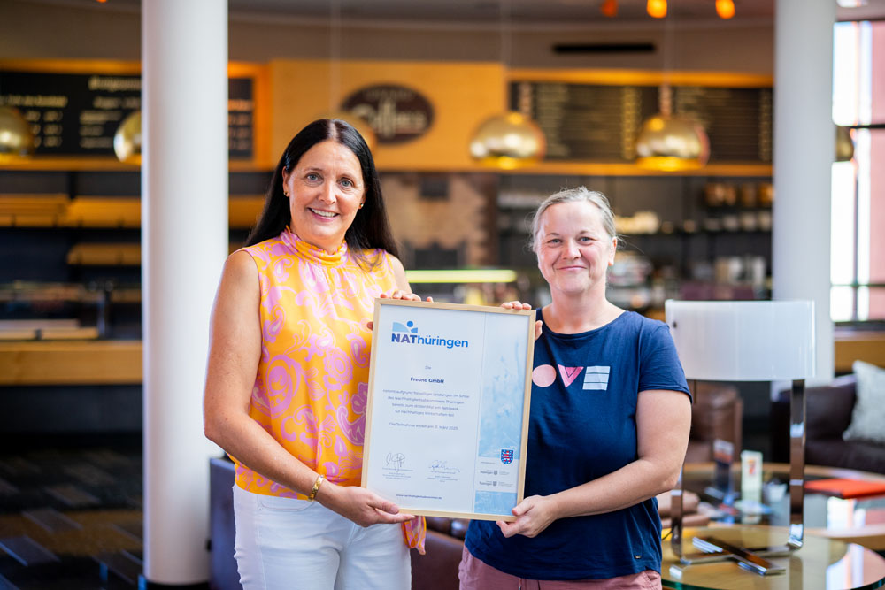 Wir haben uns erneut beim NAT (Nachhaltigkeitsabkommen Thüringen) beworben und erhielten letzte Woche die Urkunde von Frau Booth.