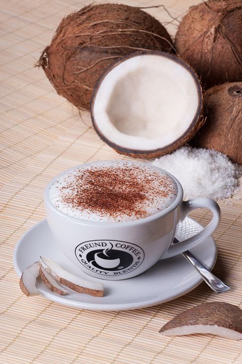 Eine raffinierte Kaffeespezialität aus dem Zusammenspiel von aromatischem Espresso, cremiger Milch und köstlichem Kokosaroma.