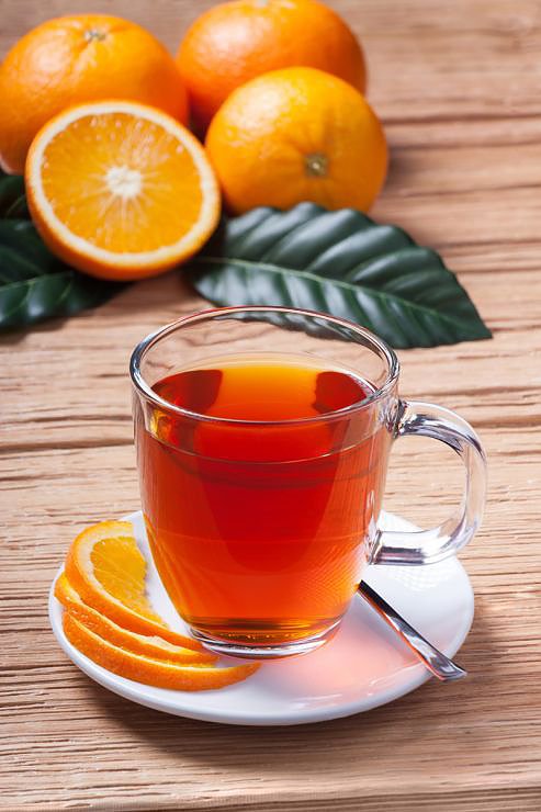 Erfrischender Teecocktail bestehend aus südafrikanischem Rotbusch Tee mit aromatischem Orangensirup.