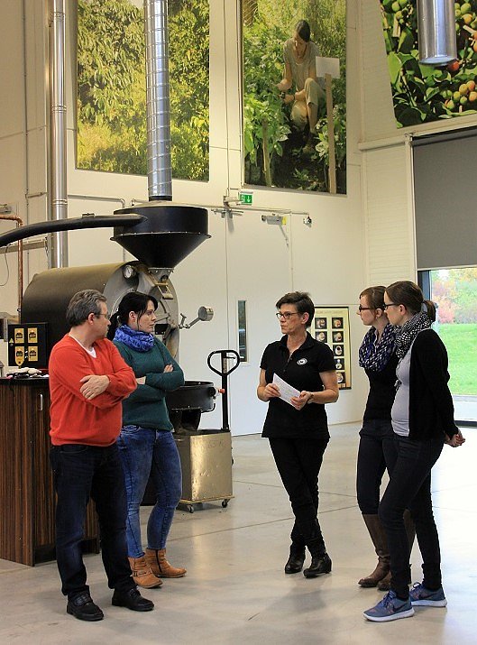 Vom Kaffeeduft umhüllt erläuterte unsere Röstmeisterin danach das Röstverfahren und schaute gemeinsam mit unseren Gästen den Kaffeebohnen zu, wie sie sich ganz langsam und schonend braun färbten. Abschließend gab es eine kleine Einführung in die Kaffeekunde – von den Geschmacksrichtungen der verschiedenen Kaffeesorten bis hin zum Unterschied zwischen unserem traditionellen Langzeitröstverfahren und der industriellen Röstung.