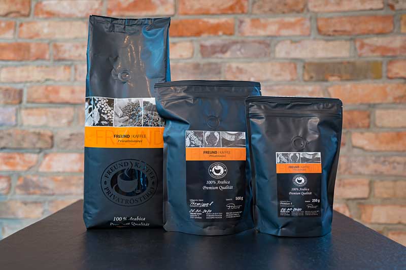 Die Bohnen werden bei uns nach dem Rösten per Hand verlesen, anschließend gemischt und verpackt in Tüten mit Aromaschutzventil. Unsere Spitzenkaffees behalten durch ein Einweg-Aromaventil mindestens 12 Monate ihr volles Aroma.