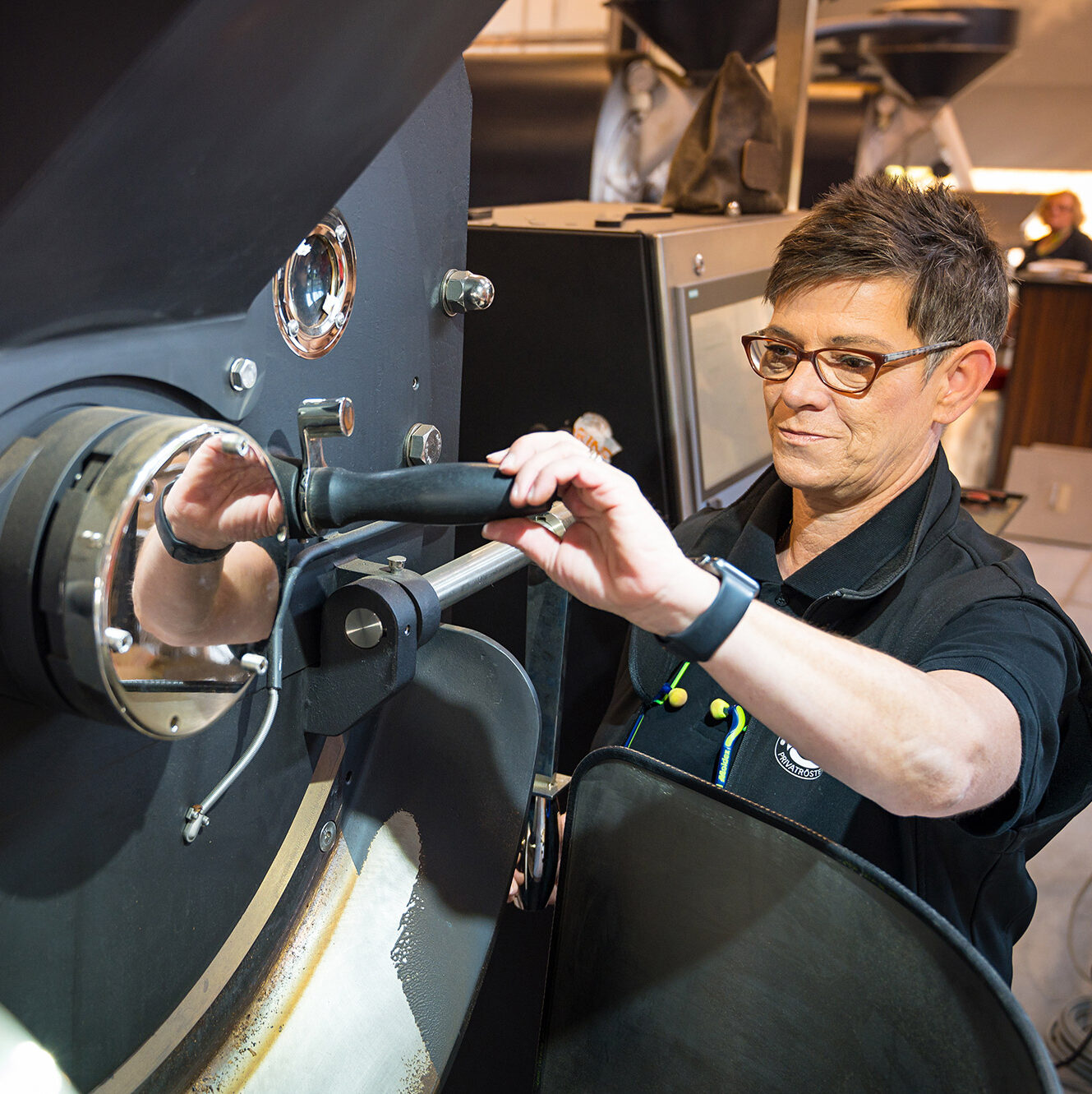 Wir veredeln unsere Spitzenrohkaffees im Langzeitröstverfahren nach Wiener Art. Geröstet wird bei uns mit einem Trommelröstofen. Nachdem der Röstofen auf eine Temperatur von ca. 230 °C angeheizt ist, lässt der Röstmeister den Grünkaffee in die Trommel. Während des Röstens verändern die Bohnen ihre Farbe von zartgrün über gelbbraun zu hell- bzw. dunkelbraun.