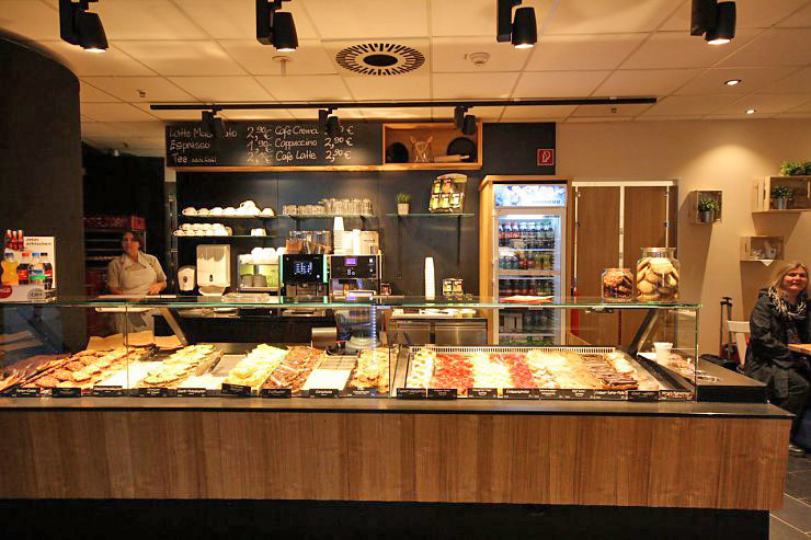 Das neue Ladenkonzept besticht durch die Verwendung von natürlichen und ursprünglichen Materialien und schafft so auch im hektischen Bahnhofsalltag eine gemütliche Atmosphäre für die Kunden. Die Thekenanordnung wurde bewusst dem Kundenlauf mit einem Außenverkauf angepasst. Im Inneren des Ladens befindet sich zusätzlich ein gemütlicher Sitzbereich, um den Gästen das Warten so entspannt wie möglich zu gestalten.