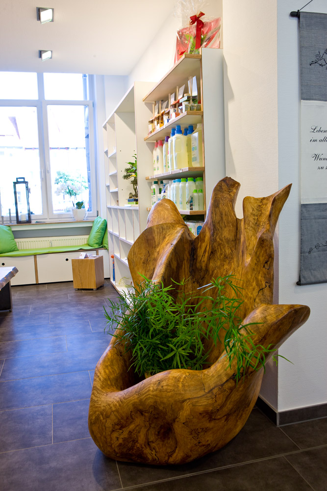 Für diese Branche ist eine sehr spezielle Ladeneinrichtung gefragt: Es wird großer Wert auf ein natürliches Ambiente mit einer gemütlichen Ausstrahlung gelegt. Die Menschen wollen im Laden Natur und Authentizität spüren. Dann wirkt sich das Ladenbaukonzept verkaufsfördernd auf das Geschäft aus, so auch bei „Lebenskunst“: