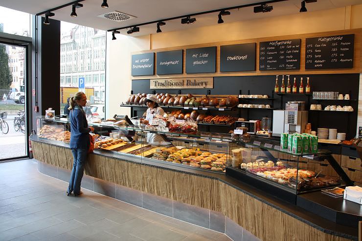 Der Name „Traditional Bakery“ verspricht nicht zu viel. Das Ladenbau-Konzept ist genau auf den Namen abgestimmt, um den Charme einer handwerklichen Bäckerei rüberzubringen. Schon außerhalb der Läden gelangt ein bekömmlicher, frischer Duft in die Nase. Beim Eintritt fühlt man sich in die Vergangenheit versetzt, als Backwaren ausschließlich mit der Hand geformt und im Traditionsofen hergestellt wurden.