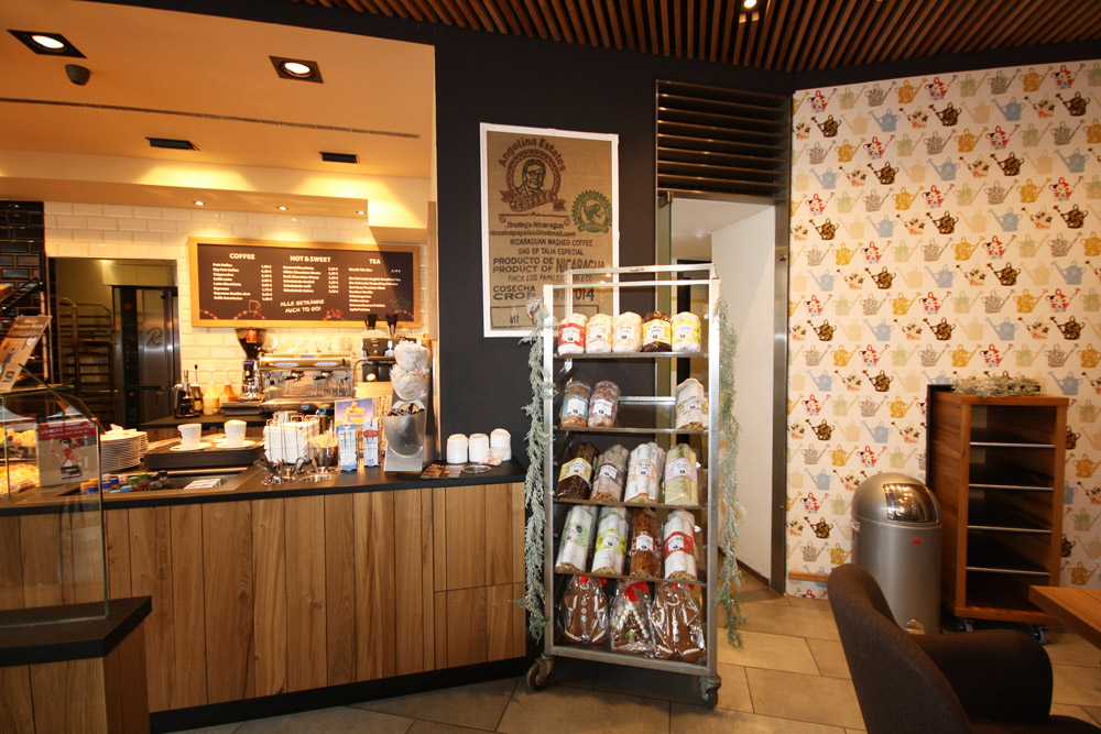 Das Ergebnis ist eine innovative und zugleich gemütliche Bäcker-Filiale, die ihre Kunden mit köstlichem Gebäck und frischen Kaffee-Spezialitäten verführt. Die Herzlichkeit des Personals trägt ihr Übriges zur hohen Kundenfrequenz bei. Viel Holz in unterschiedlichen Farbtönen erzeugt ein warmes Ambiente, in dem sich Kunden und Mitarbeiter wohlfühlen.