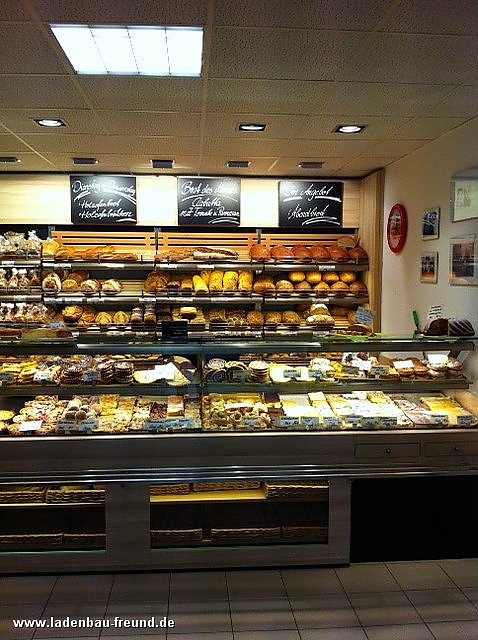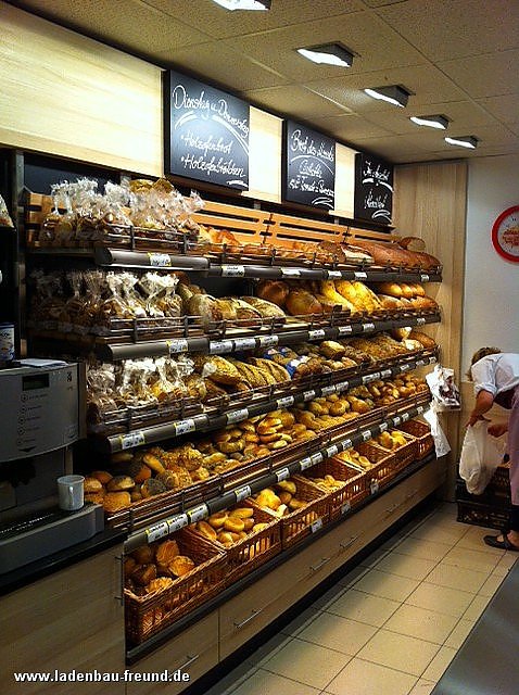 Die Verkaufsfläche ist nicht viel größer als 16 m² und doch besticht die Filiale mit ausgeklügelten Besonderheiten und Highlights. Die mit Mongori-Eiche-Dekor ausgestattete Theke hat eine Länge von 4,60 Meter und zieht die Blicke der vorbeilaufenden potenziellen Kunden auf sich. Die Präsentation der Waren wird durch eine geschickt angebrachte LED-Beleuchtung unterstützt und ist optimal an den Kundenlauf angepasst. Diese Art von Beleuchtung zaubert warme Farbtöne und setzt die Köstlichkeiten perfekt in Szene. Eine weitere Besonderheit stellt das Brotregal dar, um eine ganz besondere Vielfalt an frischen Backwaren anbieten zu können, vereint es 5 Etagen und erstreckt sich über eine breite Fläche.