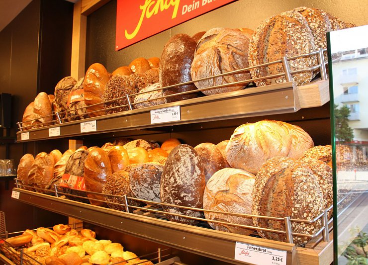 Eine gelungene Kombination aus nostalgischen und modernen Elementen macht den besonderen Reiz des Einrichtungskonzeptes aus. Verputzter Backstein im Ofenbereich, das Brotregal aus Holz und eine nostalgische Dekoration stehen für Handwerk, Tradition und jahrelange Erfahrung.